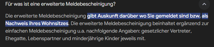 Und die erweiterte Meldebescheinigung erklärt Google recht einfach: