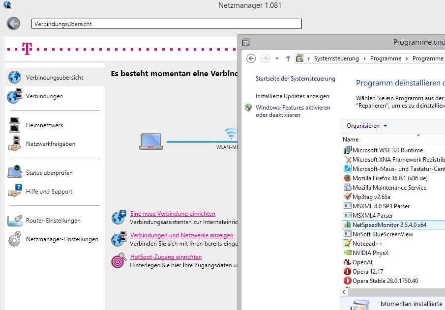 Der Netzmanager (bei mir V 1.081) installiert sich unter C:\Program Files\Telekom\Netzmanager (getestet unter Win 7 HP SP 1). In der Systemsteuerung (Programme\Programme und Funktionen) wird er bei mir unter dem Namen "Netzmanager" gelistet. Im Programm selbst kann unter Netzmanager-Einstellungen, Rubrik Allgemein, Bereich Starten und Beenden des Netzmanagers die Checkbox "Beim Starten von Windows ausführen" aktiviert/deaktiviert werden. Alternativ kann unter msconfig, Register Systemstart das Element "Netzmanager" deaktiviert werden, falls kein automatischer Start beim Hochfahren von Windows gewünscht wird. Im Task-Manager wird der Prozess als netzmanager.exe bezeichnet. In den FAQs (http://hilfe.telekom.de/hsp/cms/content/HSP/de/3370/FAQ/theme-45858870/Internet/theme-45858729/Software/theme-120499781/Netzmanager) werden einige Anwendungsszenarien beschrieben.